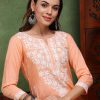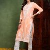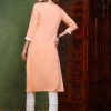 The soft peach hue adds a refreshing and elegant touch, making it easy to pair with a variety of bottoms—be it palazzos, leggings, or trousers. Whether accessorized with statement jewelry for a festive event or kept minimal for a refined office look, this kurta ensures you stay effortlessly stylish.